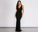 Stand out tonight in our Miriam dress! She features a sleeveless body with a V neckline. a plunging V back with a bar detail. a fitted bodice and a trumpet silhouette. She is composed of a crepe knit that offers a moderate stretch. Includes back zipper