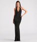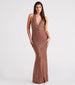 Showcase a gorgeous allure in the sultry Miriam rhinestone mermaid long dress! She features a plunging V-neckline with halter straps. a bold open back. a high waist. a floor-length hem with a curve-hugging mermaid silhouette. and glimmering rhinestone embellishments in an intricate geometric design. The semi-sheer knit fabric features a mini-length lining. Style with platform heels for your next fancy party.