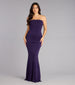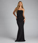 Flaunt a gorgeous shine in the Mischka glitter formal dress at dressy events! Designed to amaze. this strapless dress highlights your figure in a ruched mermaid silhouette while the floor-length hem adds a dramatic flair.