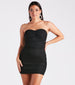 You'll be Miss Hot right now in this strapless mini dress - sure to light up the dance floor! It features a sweetheart neckline. non-slip grip lining. and side ruched seams to flaunt your curves and a bodycon silhouette. Complete the look in sassy platform heels and earrings.