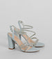 Strut with marvelous shine in these nubuck block heels to adorn your cocktail or dressy attire! They feature an almond toe. asymmetrical rhinestone-embellished straps. an adjustable ankle strap. and buckle closure. Complete the look with glitzy earrings.