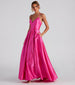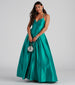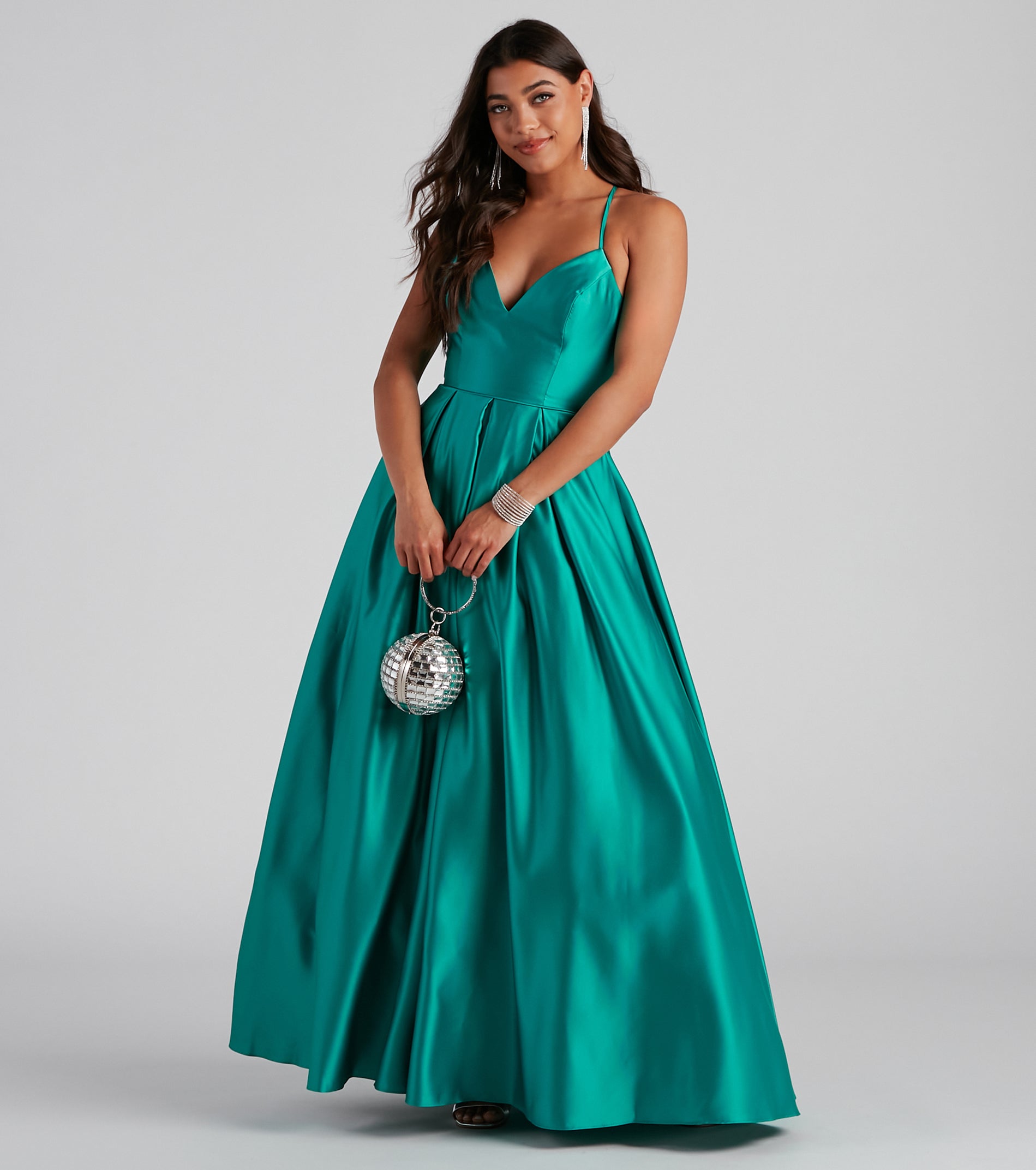 Lace up in a ball gown that creates that enchanting moment you've been dreaming of! Molly features a sleeveless V-neckline with padded cups. spaghetti straps that lead to a cross-back design. and a stunning lace-up back. Her slim-fit bodice leads to a pleated ball gown silhouette that is accented with hidden pockets. Molly is composed of a lined woven satin fabric that offers a relaxed fit with minimal stretch. Includes petticoat to create extra volume for your formal occasion outfit. Complete look with a rhinestone clutch.