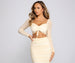 Create a head-turning moment in a mesh crop top that commands attention! The top features a sweetheart neckline with a ruched drawstring. long sheer sleeves. and a cropped hem. Complete look with the matching midi skirt and mules.