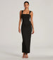 Make your lovely arrival in the Monae crepe formal dress at rehearsal dinners. weddings. or banquets! Made from a crepe fabric. this dress offers a poised and polished style for any occasion. She boasts a square neckline adorned with shoulder straps. a flattering form-hugging slim silhouette. and a center back slit for movement along the long-length hem. Complete the look with a clutch and stiletto heels.