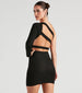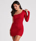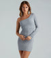 This glitter mini dress will inspire you to dance in the moonlight at dressy events! The short dress features a one-shoulder long sleeve. bodycon silhouette. and a lattice open-back design. Complete the look in a rhinestone hair barrette for a gorgeous updo!