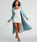 The denim trench coat you'll be coveting this season! Layer over your casual to dressy outfits for any occasion. It features fitted long sleeves for a sleek look. a classic lapel collar neckline. a tie-waist belt to cinch your waistline on the longline silhouette. and convenient side pockets to keep your hands warm. Complete the look with a cute mini purse and heels.