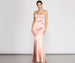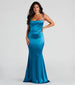 The stunning Nahla dress enchants and brings the charm with her luxe satin and flattering mermaid silhouette to embrace curves! Perfect for prom. she features a sleeveless cowl neckline. adjustable spaghetti straps. and a flared mermaid silhouette. Nahla is composed of a lined satin fabric that offers a form-hugging fit with a moderate stretch. Complete your glamorous look with rhinestone heels and duster earrings.