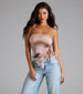 Elevate your babe status in something new! This strapless abstract crop top is designed to flaunt your figure and style with a trendy slit and asymmetrical hem.