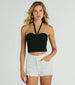 The new you and look has arrived with this sassy halter crop top perfect for beach days and casual hangs! The sleeveless rib knit top fits and flatters with a sweetheart neckline. halter spaghetti strap tie. cinched bust detail. and cropped hem. Complete the look in denim shorts and shades!