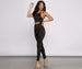 Head out in this sleek catsuit for your next date night or GNO with the squad! The catsuit features a sleeveless halter neck. halter neck ties. a sexy cutout at the midriff. and a form-hugging skinny leg fit. The catsuit is composed of a smooth knit fabric that offers a form-hugging fit with a moderate stretch. Complete look with a rhinestone clutch.Â
