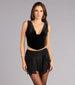 A little flirty. a little extra—this glitter knit mini skort brings that effortlessly confident vibe you love. The flowy hanky hem moves with you. while the hidden fitted shorts keep everything smooth. secure. and ready for the night.