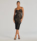 Nights in this sleeveless midi dress will be unforgettable! The dress boasts a sweetheart neckline leading to the flattering bodycon silhouette and is finished with a midi-length hem. Complete the look with earrings.