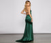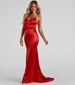 Look oh-so-darling in our sleek satin Nola gown! She features a sleeveless bodice. a V-neckline. and spaghetti straps that lead to a strappy back design for a chic and stunning look. Her high waist seam elongates your silhouette and flares into a mermaid-style hem with a gorgeous train that sweeps the floor behind you. The dress is composed of a satin fabric and offers a moderate stretch. Complete your head-turning outfit with statement earrings and new heels.