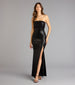 Designed to steal the spotlight. the Nyssa strapless gown features a ruched bust. mermaid fit. and a daring thigh-high slit. Equal parts sultry and sophisticated. it's a look that guarantees unforgettable entrances.