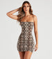 This snake mini dress will take your style to a new scale! It features a sleeveless square neck with sleek spaghetti straps and side ruched seams to accentuate your curves along the bodycon silhouette. Complete the look in a choker necklace.