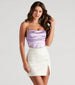This satin corset top is oh-so-sleek and stylish! It features a strapless bodice with a slightly angled neckline. a pleated overlay. flexible boning to provide structure. and a cropped. form-hugging fit. The silky-smooth stretch satin fabric includes a full knit lining. Pair this top with faux leather pants and clear mules.