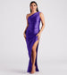 Your curves deserve the spotlight in the Olga formal dress perfect for bridesmaids or fancy dinner parties! She features a sleeveless one-shoulder neckline with an asymmetrical strap. bust lining. and side ruched seams to accentuate your figure along her bodycon. slim silhouette. and a skin-flaunting high side slit and long hem. The formal dress is composed of a slinky knit fabric with a sheen effect and moderate stretch. Style with a stunning jewelry set and heels to complete your dressy look!