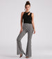 These retro fab checkered print flare pants will have your festival 'fit on another level! They feature a high-rise waist. a hip-hugging fit. a flared hem. and a bold checkered print pattern that will have all eyes on you. The ribbed knit fabric offers plenty of stretch. Style with a basic crop top and strappy sandals.