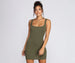 You're always on it when it comes to style. and this basic knit mini will make for such a cute 'fit. The dress features a sleeveless bodice. tank-like shoulder straps. a square neck and back. and a short. form hugging fit. The dress is composed of a soft knit that offers plenty of stretch.