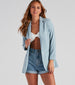 On your way and looking like a boss! Showcase your classic style in this oversized blazer featuring long cuffed sleeves. a collared neckline. shoulder pads for a structured fit. and an open-front design with faux front slot pockets. Complete the look in a surplice blouse and trousers.