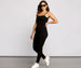 Channel those basic vibes in a catsuit that can be dressed up for a casual day out. The catsuit features a sleeveless square neckline. spaghetti straps. and a partially open back. The relaxed fit bodice leads to a skinny leg fit with a tapered hem. Style your catsuit with chunky sneakers for a casual low-key outfit.