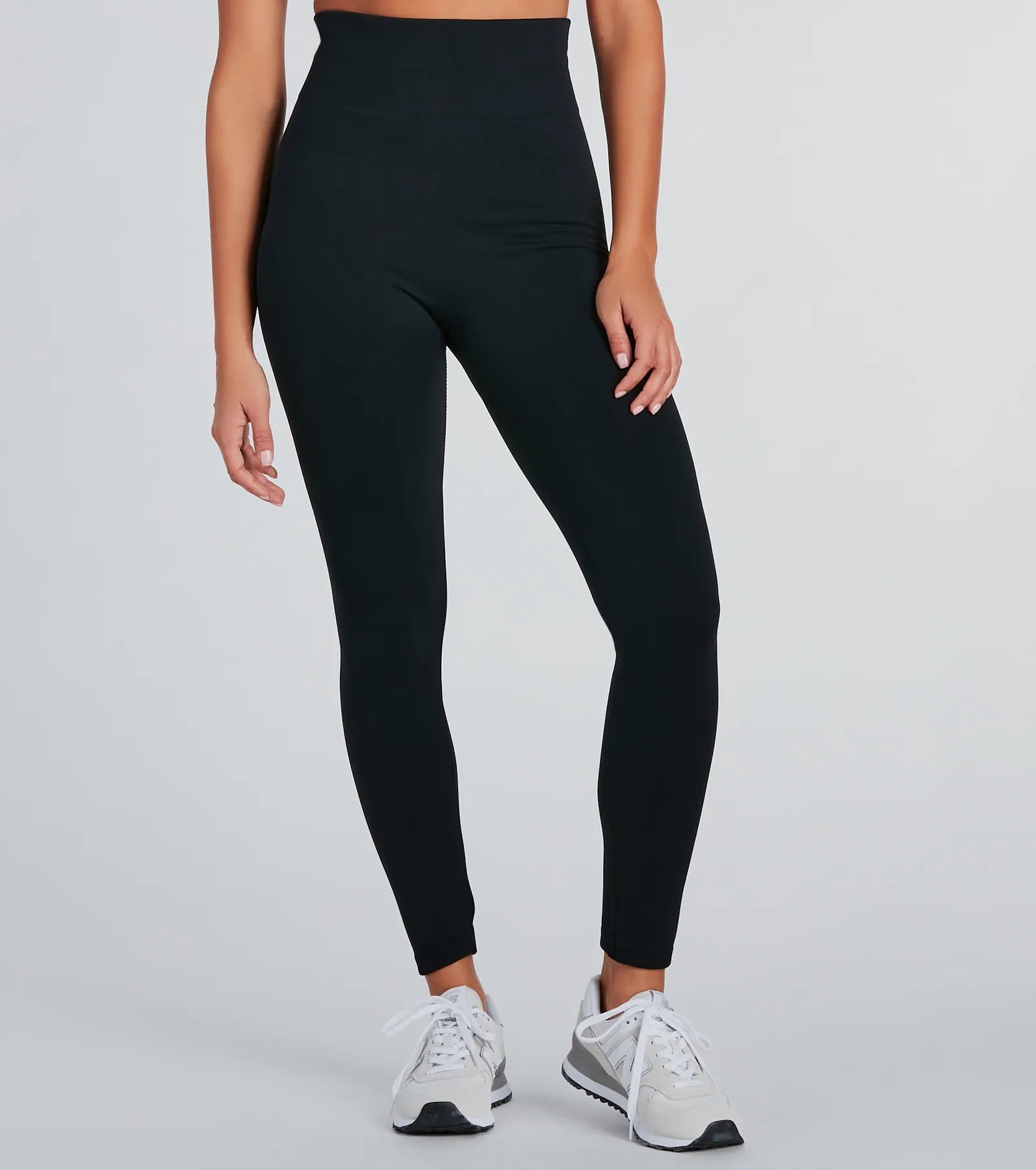 A pair of seamless knit leggings you'll be reaching for on the daily! They feature a soft opaque fabric with a supportive high-rise waistband that provides the perfect fit. and a skinny-leg design on comfortable. seamless knit fabric with plenty of stretch. Style with a cozy lounge jacket for running errands or grabbing coffee!