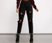 Bring the edge in these jeans to show off your edgy side! The jeans feature a high rise waist. heavy destruction throughout. and a boyfriend fit with a cropped hem. Complete look with a flannel top to channel those fall vibes.