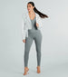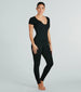 This seamless short sleeve catsuit is perfect for coffee runs or everyday errands! Crafted from a seamless ribbed knit fabric with plenty of stretch. this catsuit features a crew neckline with a center-notched V-neck design. short-fitted sleeves. a skinny-leg silhouette. and an all-over form-hugging fit to show off your curves. Style with a denim jacket for a cute casual 'fit.