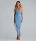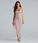 One Last Dance Glitter Asymmetric Ruffled Maxi Dress