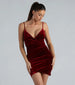Have one more perfect night in this velvet mini dress! The stylish short dress features a daring V-neckline. adjustable spaghetti straps. a side pleated seam. and a body-hugging silhouette. Make a bold statement in this sultry mini dress that is sure to turn heads! Style with a clutch and sparkly heels.