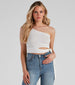 Obvi this knit top is the perfect one for you. With its cute tie waist detailing and one-shoulder neckline. it's sure to elevate your everyday fit. Complete the look in trendy distressed shorts for a casual hang with friends.