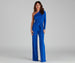 This jumpsuit is clearly a closet must-have for your next celebration! It features a one-shoulder. long sleeve. tie-waist. side ruching. and a wide-leg silhouette. Composed of a smooth knit fabric with a moderate stretch. Perfect for styling with mules and sparkly hoops.