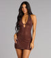 A rhinestone bodycon mini dress that demands to be the center of attention! Strike the crowd with your glam shine in this dress with a sexy strappy open back and plunge neckline.