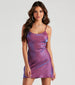 Take your style to the outer limits in this holographic a-line short dress featuring a sleeveless boat neckline. adjustable spaghetti straps. and a curve-hugging fit. Complete your chic look in lucite mules.