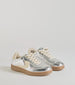 These metallic sneakers pair perfectly with your everyday outfits. They feature a round-toe. a lace-up front closure. and a rubber gum sole.