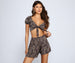 Keep it chic in a paisley crop top that will have you ready for festival season! The top features a plunging sweetheart neckline. short puff sleeves. a tie-front accent. and a paisley print. The top is composed of a smooth knit fabric that offers a form hugging fit with a moderate stretch. Complete look with the matching high waist shorts.Â