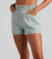 These denim shorts are such a treat with no tricks! They feature a cute. paper bag high-rise waist. roll cuffed hem. dual button front. hidden zipper closure. belt loop accents. and a classic 5-pocket design. Complete the look in a bodysuit and sandals.