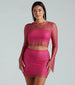 Shop Matching Bottoms: Party Mood Rhinestone Sheer Fishnet Mini Skirt