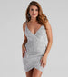 Get the party started with a mini dress that brings all the shine! The dress features sparkling sequins throughout. a wrap V-neckline. adjustable spaghetti straps. and a wrap mini-length hem. The dress is composed of a lined mesh fabric that offers a form hugging fit with a minimal stretch. Complete look with rhinestone heels and a sphere clutch.