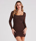 This glitter mini dress will inspire your next look for a party! It features sheer long sleeves. a square neck. and a bodycon silhouette. Style with strappy block heels to complete the look.