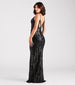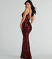 The Pauline formal sequin dress catches the light just right. making way for your head-turning entrance! She features a beautiful sleeveless plunge V-neckline with a sheer mesh insert. a padded bust. adjustable spaghetti straps. a stunning draped beading along her back. and a flattering bodycon silhouette and floor-length hem. The formal dress is designed with a sparkling sequin-scroll pattern on mesh fabric with a stretchy knit lining. Complete the look with fringe earrings for a gala or black tie event!