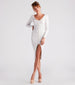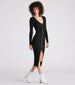 Forever a perfect pick for your next chic soiree! This sweater maxi dress features long fitted sleeves. a plunge V-neckline. a center front faux pearl button-down along the bodycon silhouette. and a slit accent. The ribbed knit fabric offers a moderate stretch. Complete the look with pointed-toe booties.