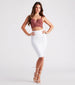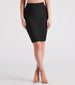 Add chic and sophisticated vibes by adding this bandage midi skirt to your closet! It features a smooth high-rise fit and is crafted from bandage-seamless knit fabric that offers a form-hugging fit and moderate stretch. Complete the look in a sultry corset top for a wine bar with the ladies!Â