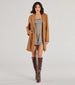 Layer on the chic style with this classic faux wool trench coat featuring a lapel collar. long sleeves. an open front. and a long-line hem with a relaxed fit. Style with a mini dress and knee-high boots for the perfect fall and winter vibe!