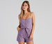 It's a perfect day to rock a romper for a casual moment! The romper features a sleeveless V-neckline. a cami-styled bodice. multi-button down front. adjustable spaghetti straps. and a smocked back. The waist features a cinching tie waist belt. hidden side pockets. and cuffed shorts. The romper is composed of a lined linen fabric that offers a relaxed fit with minimal stretch. Complete look with wedges and a denim jacket.Â