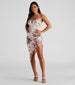 This curve-hugging midi dress is perfect for your vacation in paradise. or to just look like you're on one! It features a sleeveless V-neckline. spaghetti straps. a midi-length asymmetrical hem to showcase some leg. and an all-over tropical floral print to match the vibe of a vacay. Style this dress with strappy mules.