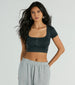 Add this perfect henley crop top to be your fashion muse for creating all sorts of outfits! This top features short sleeves and a square neckline. accentuated by snap-button closures. Its fitted crop hem and stretchy rib knit fabric fit like a glove. Complete the look in a denim midi skirt for any casual plans!