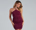 The perfect mini dress for a perfect night! Flaunt your curves in this halter dress featuring spaghetti straps. ruched side seams. a form-fitting silhouette. and a lace-up back on a slinky-knit-lined fabric. Complete the look in statement hoops.