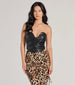 This faux leather cropped tube top is perfectly sleek for a night on the town! Featuring a sexy plunge neckline. all-over ruching. and a fitted hem. Complete the look with a skirt.