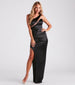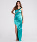 You'll be sure to turn heads and catch all the glances in the alluring and chic Peyton satin illusion dress! She features a one-shoulder neckline with a wide strap. an asymmetric sheer mesh insert at the bust to give the illusion of a cutout design. a slim-fit bodice with ruched detailing. and a form-hugging. floor-length silhouette with a skin-flaunting high side slit. The smooth satin-knit fabric showcases a luxe sheen. Style with strappy heels for your next fancy soiree.